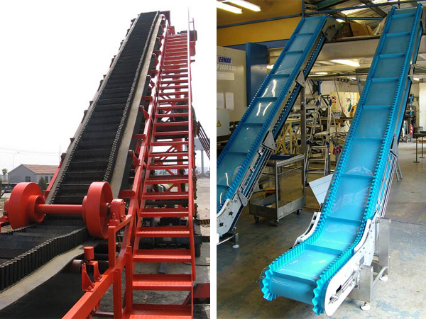 大傾角膠帶輸送機(jī)為一般用途的散狀物料連續(xù)輸送設(shè)備,大傾角輸送機(jī)采用的是具有波狀擋邊隔板的輸送帶(裙邊輸送帶,裙邊隔板輸送帶)。因此特別適用于大傾角輸送。